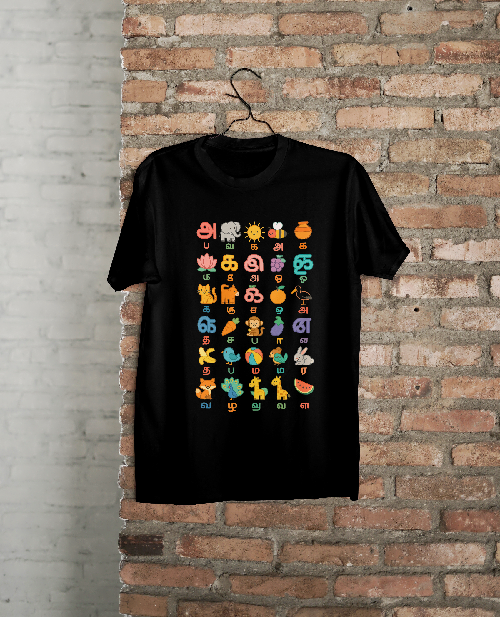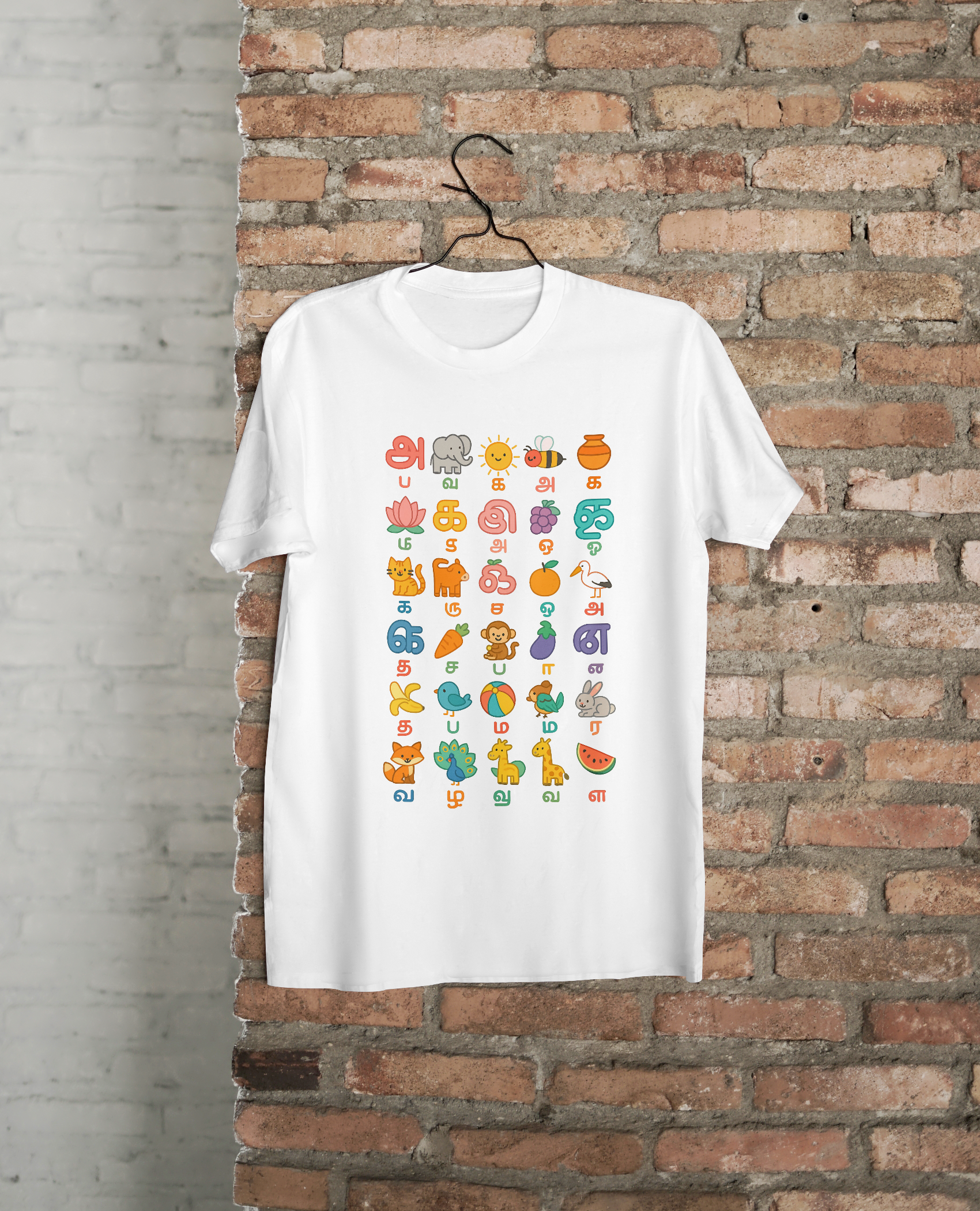 Tamil Alphabet Learning Poster for Kids | Illustrated A–Z Tamil Uyir & Mei Letters Chart