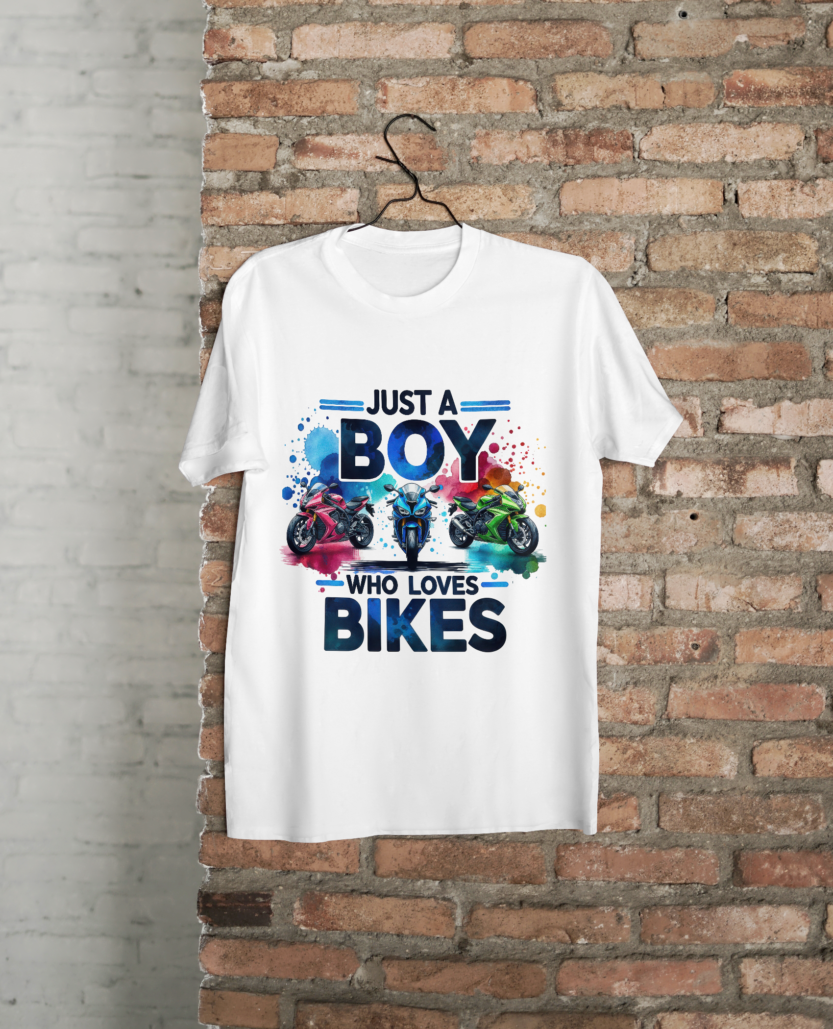 Unleash the young rider’s passion with this “Just a Boy Who Loves Bikes” tee — a bold, vibrant design featuring three superbikes brought to life with stunning watercolor splash art. Perfect for kids who dream in horsepower and live for speed, this premium print blends energy, color, and attitude into one epic T-shirt.