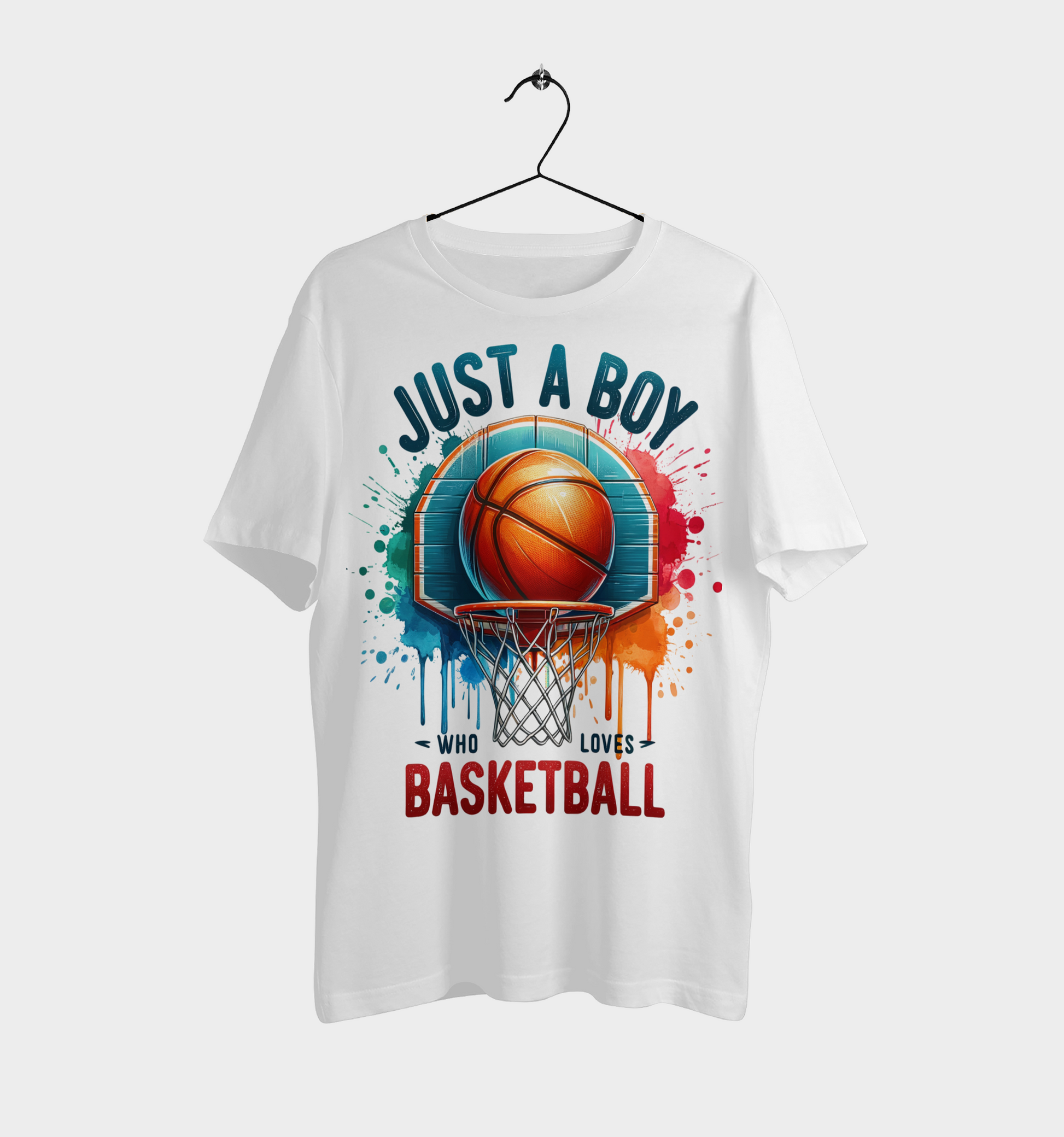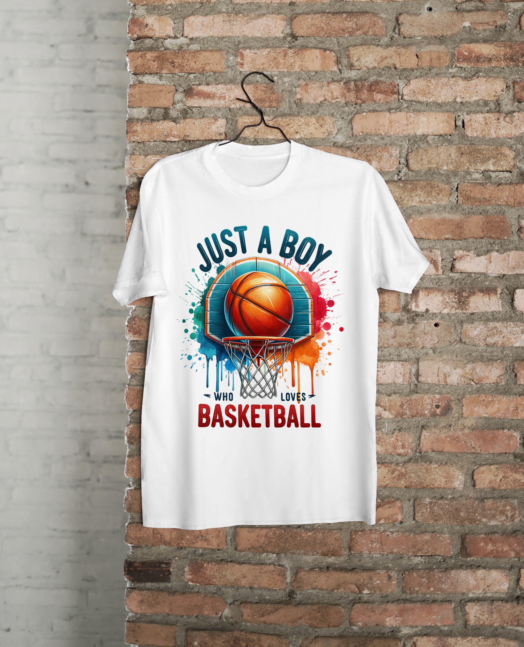 Celebrate the spirit of every young hoop dreamer with this vibrant basketball-themed design. Featuring a bold basketball sinking perfectly into the hoop, surrounded by dynamic paint splashes and rich gradients, this artwork captures pure passion and energy. The phrase “Just a Boy Who Loves Basketball” reflects dedication, playfulness, and the love for the game. Perfect for kids and teens who live and breathe basketball